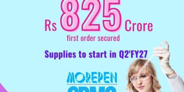 गुरुग्राम : मोरेपेन लेबोरेटरीज लिमिटेड (NSE: MOREPENLAB; BSE: 500288) ने एक अग्रणी वैश्विक फार्मा कंपनी से लगभग ₹825 करोड़ (USD 91 मिलियन) का बहुवर्षीय कॉन्ट्रैक्ट डेवलपमेंट एंड मैन्युफैक्चरिंग ऑर्गनाइजेशन (CDMO) ऑर्डर हासिल किया है। इस ऑर्डर के तहत सप्लाई अगले 4–5 महीनों…